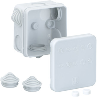 Junction box acc. DIN EN 60670 (VDE 0606), 3 recessed stepped nipples, and two loose ones enclosed, seal range 5 - 16 mm, for terminals up to 2.5 mm²