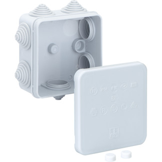 Junction box acc. DIN EN 60670 (VDE 0606), 7 recessed stepped nipples, seal range 5 - 16 mm, for terminals up to 2.5 mm²