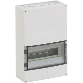 Distribution board 1 row, with additional connection space, 14 modules, elastic entries on top, 150 mm rail spacing, without PE/N terminal rails, with 35 mm standard rails, cable cover, masking and labelling strips, additional double-membrane seals and other accessories