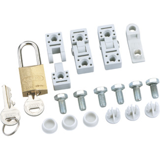 Padlock kit for upgrading the housing cover to lockable hinged door, incl. padlock, 2 hinges, fixing screws, cover plugs and drilling template