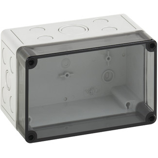 Empty enclosure, base: polystyrene, grey, similar to RAL 7035, cover: polycarbonate, transparent