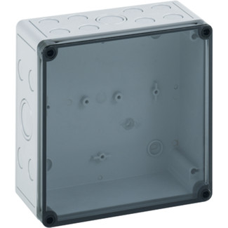 Empty enclosure, base: polystyrene, grey, similar to RAL 7035, cover: polycarbonate, transparent