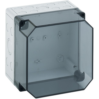 Empty enclosure, base: polystyrene, grey, similar to RAL 7035, cover: polycarbonate, transparent