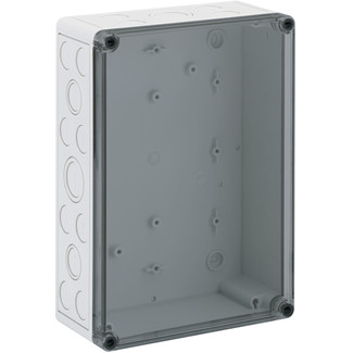 Empty enclosure, base: polystyrene, grey, similar to RAL 7035, cover: polycarbonate, transparent