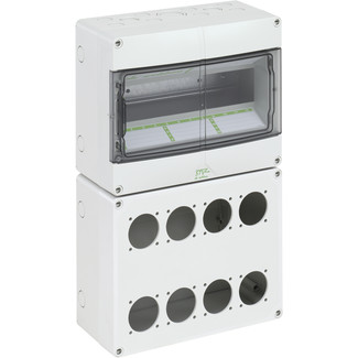 socket casing - industrial quality, Empty enclosure, prepared for the installation of Schuko- and CEE- sockets, with PE/N clip, masking and labelling strips, insulating seals, additional double-membrane seals